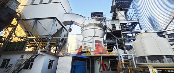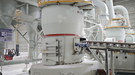 磨粉:破碎后的石灰石由提升机送至料仓,再经振动给料机将其均匀定量的喂入磨机研磨室。细粉加工可选用LM立式辊磨机和MTW欧版磨进行研磨。